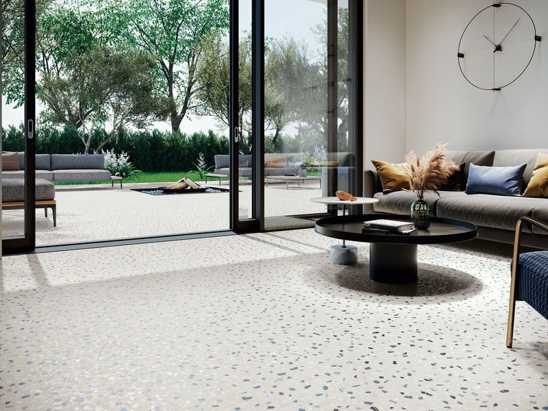 Ce carreau antidérapant a des propriétés antidérapantes, sa surface est donc rugueuse pour éviter tout glissement, adaptée à l'extérieur ou aux zones humides. Pour les espaces intérieurs de la maison, les cuisines et les salles de bains, vous devez installer la version de ce carrelage normal, dont le toucher est lisse. Cette série composée de grès cérame se distingue par son effet terrazzo traditionnel et son design soigné. Un choix qui a un grand dynamisme, étant l’un des paris phares du design d’intérieur actuel.