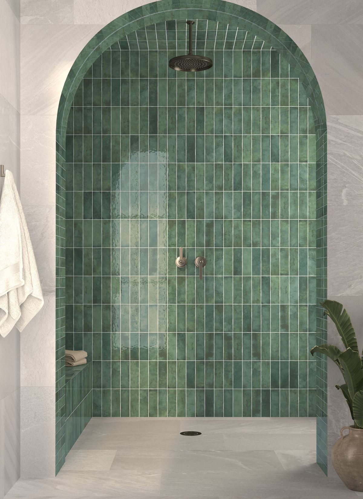 Carreaux muraux en céramique de 6,5 x 20 cm, captivants par leur vert profond. Leur finition émaillée brillante intensifie la couleur et sublime la richesse de la surface, créant un jeu de reflets tout en nuances. Le travail tactile apporte texture et authenticité, renforçant leur caractère artisanal. Inspiré par la nature, ce vert évoque sérénité et sophistication, s'harmonisant parfaitement avec les espaces à la personnalité unique. Un choix idéal pour ceux qui recherchent design, élégance et une identité céramique distinctive. Née de la tradition du tour de potier et du savoir-faire artisanal, Alfar est bien plus qu'un simple carreau mural : c'est une affirmation de style. Elle réinvente un artisanat intemporel avec une perspective moderne, fusionnant authenticité et design contemporain. Chaque carreau de 6,5 x 20 cm est unique. Ses reliefs minutieusement travaillés, ses bords légèrement irréguliers et sa finition émaillée qui capte la lumière évoquent l'essence même de l'argile modelée et cuite au four. Cette collection surprend par ses 36 motifs graphiques différents et ses quatre types de relief qui, combinés, créent des surfaces dynamiques, riches en nuances et en mouvement. Il en résulte un espace vibrant, doté d'une personnalité unique et d'une esthétique inédite.