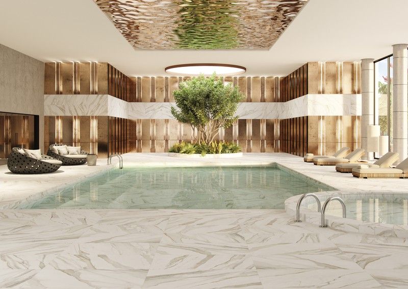 Calacatta représente une nouvelle ère de marbre fusionné avec du grès cérame. Un marbre italien classique qui offre de grandes performances techniques, un entretien facile et une grande polyvalence aux espaces.